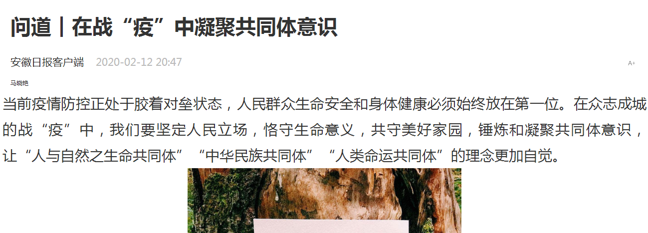 【媒体建大】安徽日报:在战“疫”中凝聚共同体意识