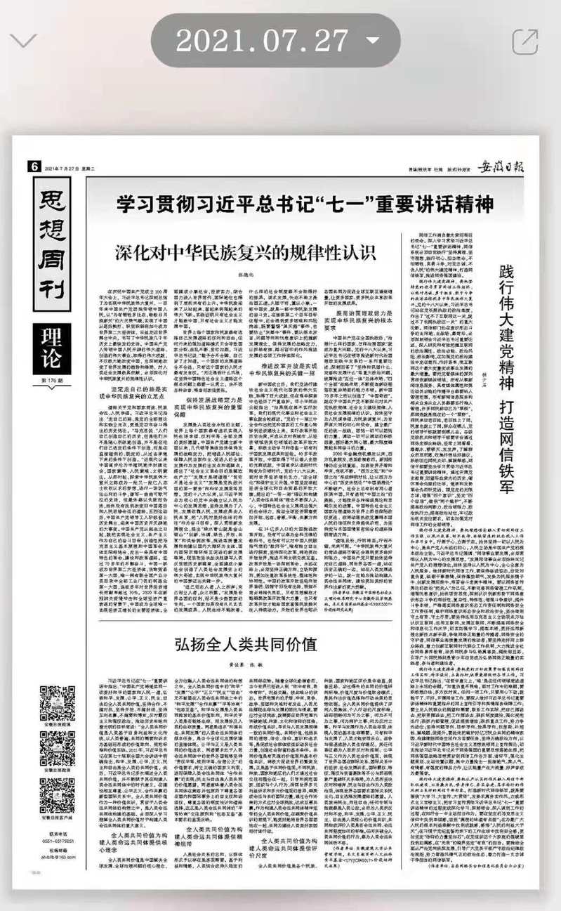 【媒体建大】安徽日报 学习强国:弘扬全人类共同价值