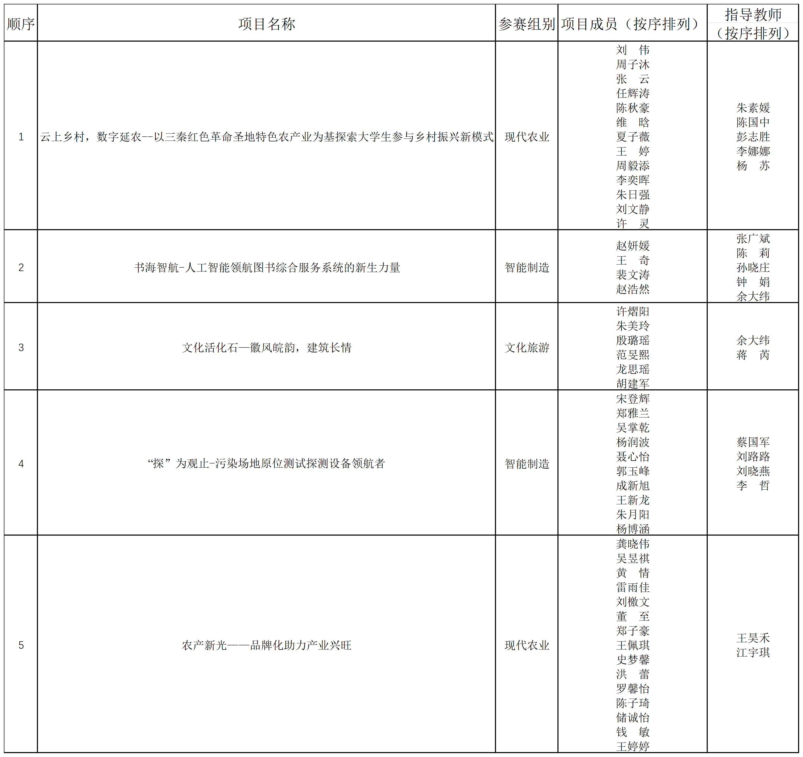 (项目顺序根据安徽学联发布顺序排列)