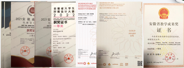 在2021-2023年期间,张馨木老师带领同学们在各类竞赛中取得了骄人的成绩,共计获奖11项。其中包括规划专业全国性赛事“WUPENiCity城市设计学生作业及城市可持续调研报告国际竞赛“两项赛事金奖一项,一等奖一项,全国大学生国土空间规划竞赛三等奖一项,以及省级大学生环境设计大赛2021、2022、2023年度一等奖两项,二等奖两项,三等奖三项,第十四届“全国城乡规划专业7+1联合毕设(北京)”一等奖等荣誉。