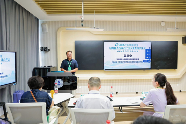 会议期间,主题分别为“园林康养与园艺疗法的科学研究”“园林康养与园艺疗法的规划设计”“园林康养与园艺疗法的推广应用”的三个分会场同步开启,邀请到24位专家学者和论文作者作报告。在“园林康养与园艺疗法的科学研究”分会场,我校建规学院景观系冀凤全教授做了题为《徽州乡村景观疗愈机制与价值转化路径研究》的主题报告,报告交流了徽州乡村景观的疗愈机制(自然生态疗愈、文化景观疗愈、空间体验疗愈),探讨其价值转化路径(生态产品开发、文旅融合、数字化赋能),并提出开发与保护的平衡策略。