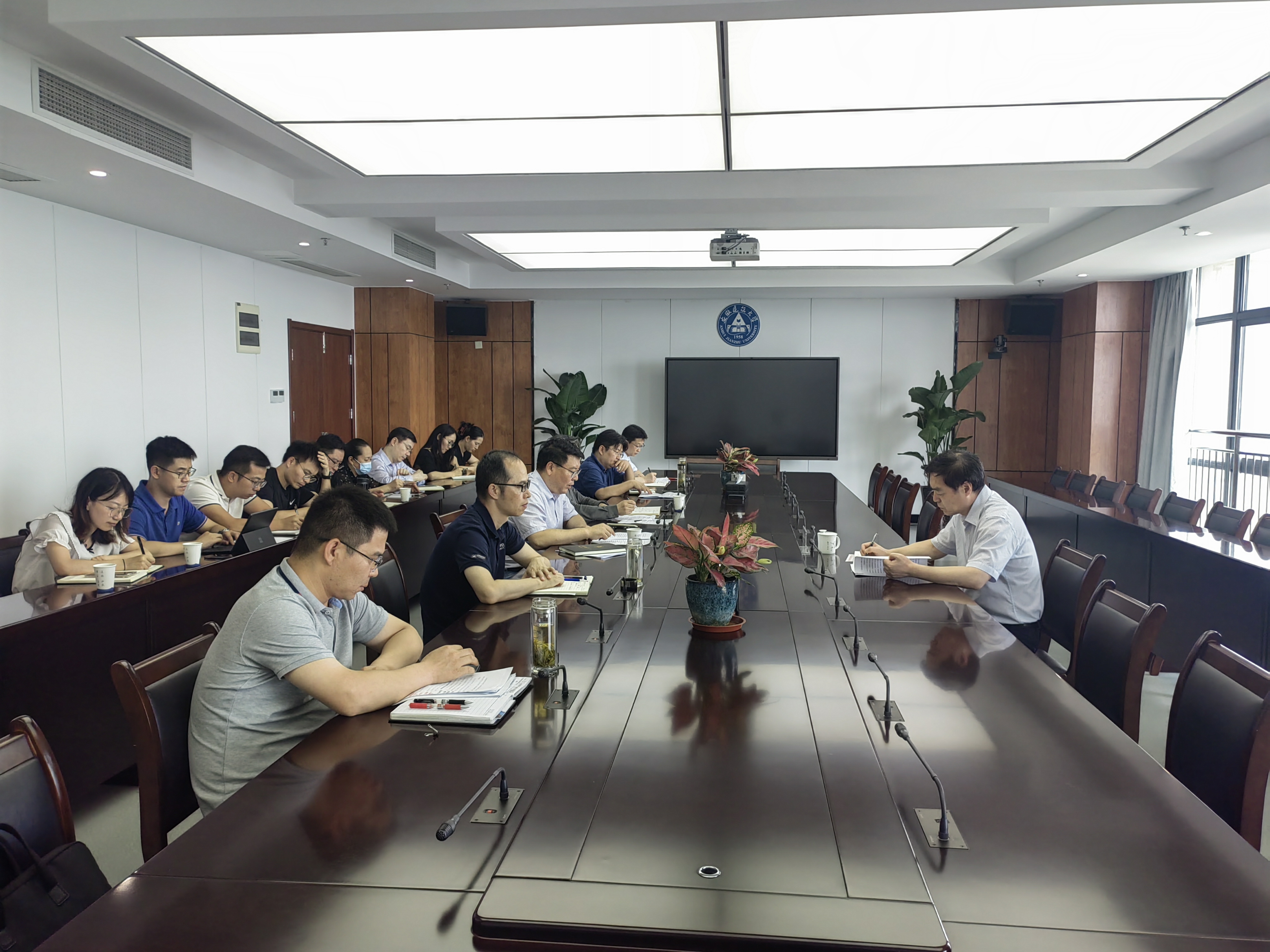 本网讯 7月4日下午,校党委副书记、校长黄显怀在徽风楼21楼第二会议室就学校本科教育教学工作开展专题调研指导。教务处、教师发展中心相关工作人员参加调研汇报会。